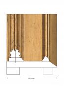The frame is built up from a flat section of softwood. The working edge is established by the addition of a rectangular batten. The rebate is established by another rectangular section that is lapped at the reverse. It appears the veneer was put in place after the frame was built up, though this is a difficult method of construction. The fluted outer section is machined from dowel and nailed through the centre into the base. The whole surface is gilded with false gold, except for the bevel to the sight edge, which is gilded with gold leaf. The surface coating has discoloured to orange, suggesting shellac-based ormolu size. Stencilled letters on the reverse of the lower member suggest the timber has been recycled.