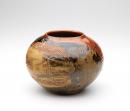 Bowl incised with barramundi design, has a mixture of different glazes producing a shiny surface.