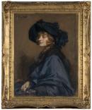 A variant on the popular Louis XV revival style, this time characterised by the use of net to texture the inner scotia and by elaborate detailing of the slip. A very similar frame appears on Longstaff’s Mrs John Connell, (656-2); nevertheless, both are in direct contrast to the other Thallon framing of Mrs Connell, (655-2). Another slight variation on the framing style is found on John Longstaff‘s Sir Leo Cussen, c. 1929, (0276/4). The dating of the label and the probable dating of the painting do not coincide. The frame is either re-cycled or the label does not reflect the date of manufacture of the frame. It nevertheless demonstrates the ongoing use of the Louis XV-style frame well into the twentieth century.