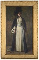 dresses (garments) full-length figures hat plume hats women (female humans)