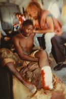 typed on accompanying paper label: STEPHEN DUPONT (underlined) / Wounded MPLA troops being flown into a military hospital in Benguella, Angola.