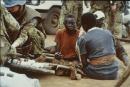 typed on accompanying paper label: GEORGE GITTOES (underlined) / “THE DAZED” Wounded Hutu refugees being protected and treated by the / Australian Army medical unit at Kibeho camp.