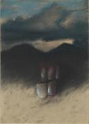 coloured pastels on brown paper
