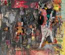 dolls (figurines) drip painting grey (colour) mixed media works toy gun toys (recreational artifacts)