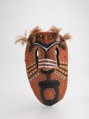 earthenware, synthetic polymer paint, feathers, seeds, raffia, metal, wire