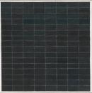 The painting is square and was one of 10 similar works, all untitled. The dark grey/black surface is regularly divided into a grid by faint white lines.