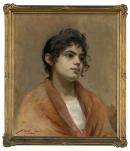 inscribed on label on reverse: Italian Girls Head / Price 60 guineas /artist Mrs J.M. Muntz Adams / 9 Tollington Av. / E. Malvern
