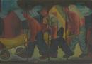 houses labour men (male humans) social realism social realism trees wheelbarrows workers
