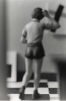 (Woman) The works are from Van Hout's 1995 series Mephitis. It comprises images made by photographing still life constructed from small scale models. The photographs from the series Mephitis show models of figures in tiny domestic interiors. Like his earlier series, van Hout refers to images drawn from television, in this instance, animated children's television dramas such as The Thunderbirds.