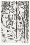 This suite of etchings illustrates the first part of the story of the Prodigal Son as told in the Book of Luke, chapter 15, verses 11-24. In this story, the younger son of a farmer requests his share of the inheritance and squanders it with 'riotous living, gambling in a bawdy house in the company of thieves and courtesans.' Starving and forced to work as a swine-herd, the most despised of all occupations, he resolves to return home and ask his father's forgiveness, humbly offering to work as his servant. With great compassion, the father forgives his son, orders the servants to dress him in the best robe, to put a ring on his hand and shoes on his feet, and to kill the fatted calf for a celebratory feast. The main elements of this narrative are depicted in Boyd's characteristically bold and expressive graphic style which reinstates the universality and timelessness of the story.