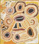 The artist represents the travels of many ancestral women to a number of sites in the Lake McDonald area, including Tjunpanya, Lampintja, Kurnkurnya, Tikatika and Putjana. At each of these sites the women conducted ceremonies, singing the songs and performing the dances associated with the site.