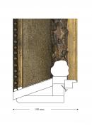The frame is made up from a cast plaster torus of imbricated oak on a wooden chassis, with a sanded flat. The torus is hollow and held in place with long nails and animal glue. The casts repeat at intervals of 11 ins, 12 ins. and 13 ins. The cross-banding of the torus is cast in place, as with the torus of ‘The purple noon’s transparent might’, (33-2) suggesting it was cast from a finished frame. The corners of the chassis are mitred, glued and nailed. They are re-enforced from behind with flat boards nailed across the mitre. The sloping flat is covered with fine sand and finished in patinated silver leaf on a white ground. The working edge is painted black and a dark patination continues on to the ornament of the back edge. Despite the current appearance of the frame, Thallon’s entry annotates the flat as light bronze.