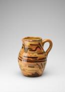 Made according to the principles of the Moly-Sabata colony, the ceramics are from local materials and in the local style of country or peasant pottery. The shapes are simple, the glazes are the same as country glazes of the region and the ceramics are very low-fired. The jug is decorated with an abstracted landscape of hills, and the river with barges on it.