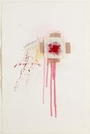 synthetic polymer paint, gauze, watercolour, plaster, chalk, glue