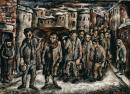 cityscapes (representations) coffins funeral processions funerals men (male humans) mourners social realism suffering