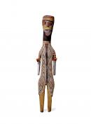 Carved figure, earth pigments & lorikeet feathers.