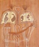 bird (animal) brown colours copies (derivative objects) cream (colour) indigenous art lines (artistic concept) white (colour)