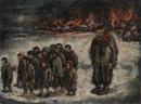 inscribed in fibre-tipped pen on reverse u.c.: 53 x 70 / Yosl Bergner / "(The village on fire in Yiddish)" / "DOS SHTETEL BRENT" / THE VILLAGE ON FIRE" /1940