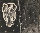 angels (spirits) banners black-and-white (colours) flower (motif) imaginary views rose (genus) trees wooded landscapes