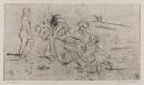 etching, drypoint, foul bite, mezzotint rocker and plate tone on grey-blue paper