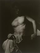 Here Olive Cotton shows Australian photographer Max Dupain with his face and one arm largely hidden in shadow, while his bare torso, other arm and crumpled shirt are exposed to the light. As in many of Cotton’s photographs, the play of light and shadow are crucial in transforming the body into an abstract combination of curved and angled patterns and forms. Still and intimate, this image captures a moment of transition: Cotton and Dupain were in a relationship when the photograph was taken in 1939, and were married later that year. Cotton was the assistant in Dupain’s Sydney studio before eventually running it.