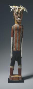 earth pigments on Ironwood (Erythrophleum chlorostachys), coconut fibre, feathers, twine