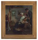 Friendly critics by Constance Jenkins was without a frame when the painting was restored in 2010. Details of the painting as it first appeared were found initially in 2009 among the papers of Bernard Hall (Director of the NGV 1891-35). In 2010, an article was located in a copy of 'New Idea' from 1909 which showed the painting and complete frame. Images of the frame were scaled up and the profile extrapolated from the various images.
