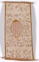 earth pigments on Stringybark, wood, cotton twine attachments