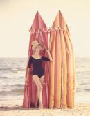 typed on paper label on reverse l.c.: LOCATION: SOUTH MELBOURNE BEACH / MODEL: JANICE WAKELEY / CLIENT : COLE OF CALIFORNIA / DATE: 1962