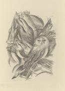 printed in image: l.r.: (artist's monogram) FCH 48; inscribed in pencil l.l.: Frogmouth Family 8/28; l.r.: F.C.HINDER 48