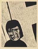 woodcut on buff Japanese paper