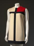 In 1961, after working at Christian Dior for seven years, Yves Saint Laurent established his own fashion house aiming to revolutionise how women dressed. From trapezeshaped tunics and mini dresses to trousers, he presented a contemporary elegance and androgyny that had not previously existed in womenswear. Throughout his career Saint Laurent paid tribute to the artists he loved, among them Pablo Picasso, Georges Braque and Piet Mondrian. This dress is named after Mondrian and pays homage to the artist’s use of geometry, two-dimensionality and block colour.