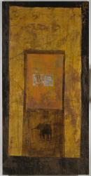 gold leaf, aluminium foil, paper and earth pigments on composition board