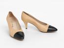 printed (vertically) in gold ink on insole: CHANEL / CC (monogram)