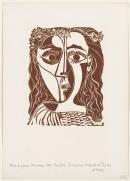 inscribed in pencil l.l.-l.r.: Petite de femme couronnée 1962. brun foncé. linogravure originale de PiCASSO / H Arnéra (in Hidalgo Arnéra's hand)