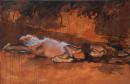 burnt ochre (colour) dark (colour attribute) dreams drip painting full slips melancholy reclining women (female humans)