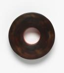 inscribed in black fibre-tipped pen on paper label on base u.c.: MARION BORGELT / "WEAVING THE LABYRINTH" / OBJECT No VI (VI underlined) 1998-9 / 33cm DIAM x 7 cm deep / PAPIER MACHÉ, BEES WAX, OIL / Marion Borgelt 99
