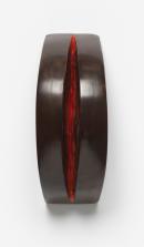 inscribed in black fibre-tipped pen on paper label on base u. c.: MARION BORGELT / "WEAVING THE LABYRINTH" / OBJECT No VIII (VIII underlined) 1998-9 / 39cm x 15.5 cm x 18 deep. cm. / PAPIER MACHÉ, BEESWAX, OIL / Marion Borgelt. '99