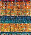 inscribed (inverted) in black fibre-tipped pen on reverse: 3 (circled) Michael Johnson 1998 TITLE: "TIERED" 8' x 7' / (pointing up arrow) / P / O / T