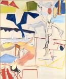 inscribed (diagonally) in blue ballpoint pen on reverse: Ken Whisson / "Juggler and / Pink, Yellow and / Blue Aerialists" / 10/12/89 + 6/1/90 / and 19/2/90 and 6/3/90