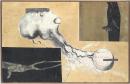 oil, enamel paint and brush and ink on composition board