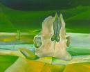 cattle green (colour) landforms mountain ranges outlines (linear form) paddock skulls (skeleton components) tone (colour effect)