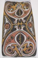 The painting depicts the largest of the several varieties of flying fox (opokibi) found in the Washkuk Hills. The flying fox is represented twice; in the upper and lower part of the painting. Each image forms a mirror image of the other.