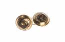Gold coloured cufflink comprising of two buttons with a connecting metal link. The surface features a textured background with two interlocking Cs at the centre and a smooth border following the line of the Cs. There is a thin outer rim.