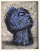 drypoint, aquatint printed in grey ink and aquatint printed in blue ink