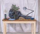 adjustable lamps bowls (vessels) decanter bottles flora (plants) flowerpots guitar cases magnifying glasses tables (support furniture)