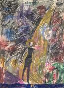 Leaving her suburban childhood home in Box Hill, Jenny Watson found herself immersed in Melbourne’s energetic inner-city art and punk scene. The Crimean Wars series is her farewell to her life on Crimea Street in St Kilda in the mid 1980s, here expressed through an aggressive and scratched style of painting that emphasises gesture and the hand of the artist. Watson portrays herself as Cinderella, creeping home after midnight with high heels in hand – a moment in punk subculture captured through an image of youth and personal experience.