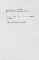inscribed (vertically) in blue ballpoint pen on reverse c.r.: Kate Daw 2002 menu (Tim)