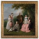 This painting depicts John Pybus (1727–1789), his wife Martha Pybus (1733–1802), and their four children – Martha holding a ribbon-trimmed hat, Anne savouring a rose’s scent, John Pybus Junior seated on the ground before his sisters, and Charles Small Pybus standing on his mother’s lap. It can be dated to around 1769, based on the ages of the children.