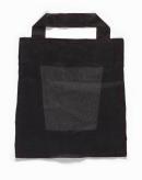 Actual Piece: 'Boxed top', 1999 (autumn/winter). The 'Boxed top' of silk organza is folded to resemble a rectangular shopping bag with handle detail. The folded garment is hand stitched in place by black cotton stitches at the interior folded edges, and again in wide red cotton running stitches around all outside edges. The front edge of the garment has a folded horizontal pleat starting 8cm from the top edge. The reverse side of the garment reveals several open pressed folds of fabric at the top and bottom sections where the original top has been folded to make up the shape of the shopping bag.